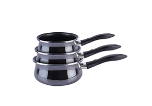 - Dos capas de esmalte exterior, color negro con acabado gris cristal.
